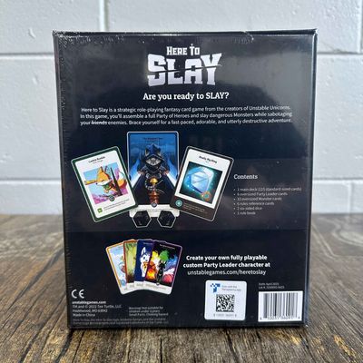 Here to Slay is a competitive role-playing fantasy strategy card game that's all about assembling a party of Heroes and slaying monsters (and sometimes sabotaging your friends too) from the creators of Unstable Unicorns.