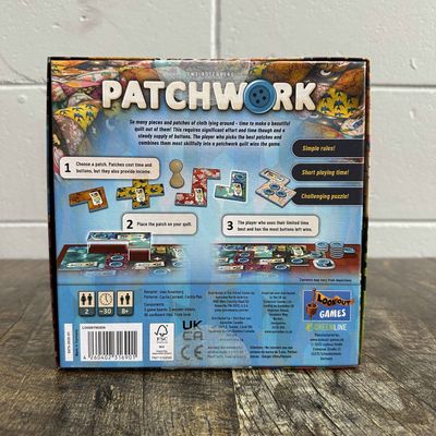 In this 2-player game, you will choose patches, spend buttons and utilise your time to craft quilts. The player with the best quilt and most buttons wins!