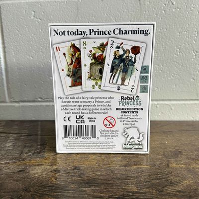 In Rebel Princess you play the role of the titular royal who doesn't want to marry a prince. This is an addictive trick-taking game in which each round presents a new set of rules and challenges. The goal of the game is to be the player that avoids the most marriage proposals... but that is a lot harder than it seems.