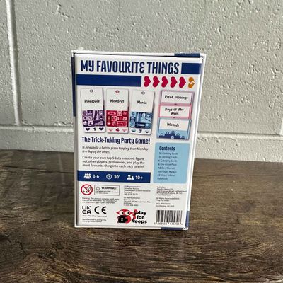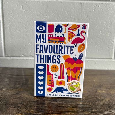 My Favourite Things is an exciting, trick-taking party game that forces you to consider life's big questions; such as: is pineapple a better pizza topping than Monday is a day of the week?