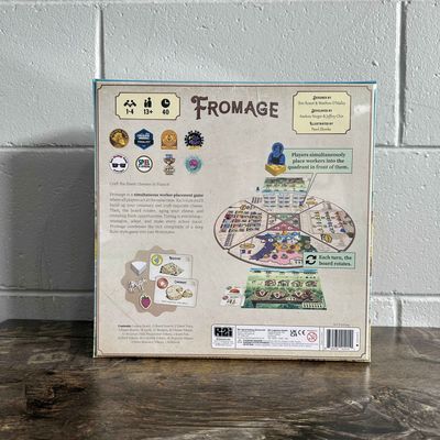 Fromage is a simultaneous worker-placement game where all players act at the same time. Each turn you'll build up your creamery and craft exquisite cheese. Then, the board rotates, aging your cheese, and revealing fresh opportunities. Timing is everything - strategize, adapt, and make every action count. Fromage condenses the rich complexity of a deep Euro-style game into just 40 minutes.