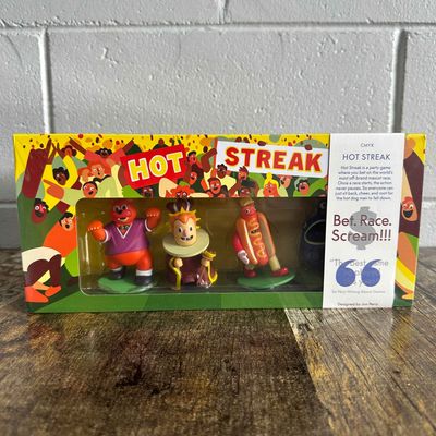 Hot Streak is a wild party game in which you bet on the outcome of the race for the world's most off-brand mascots. Once a race starts, the action never pauses. So everyone can just sit back, cheer, and root for the hot dog man to take a nasty tumble.