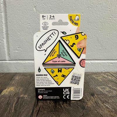 P for Pizza is a quick-thinking, easy cheesy category game. The aim is to build your giant slice of pizza by winning small triangles of pizza. To win a triangle you must be the first player to come up with a word that links the category and the letter on the cards (eg; 'K' + 'mammal' = Kangaroo). If you’re first to shout a correct answer, you win the card. Now flip a new card and go again. There are three letters and three categories on the table at all times, so you can link any letter to any category. You just need to be super quick about it!